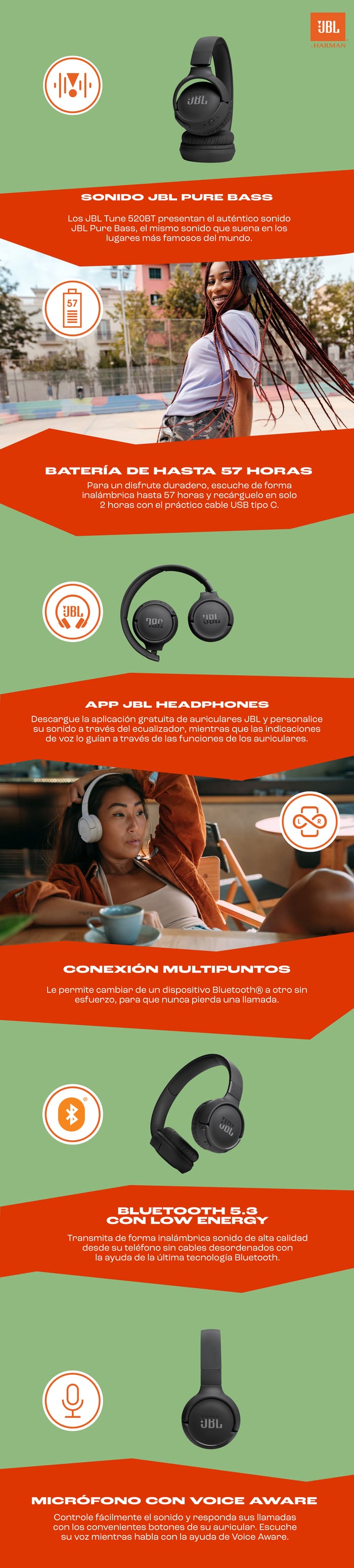 Disfruta de tu música favorita con los Audífonos Bluetooth JBL 520 que te entregan la mejor calidad de sonido. Modelo muy cómodo, de gran calidad y conexión. Aprovecha y compra los Audífonos Bluetooth JBL 520 en Hites.com