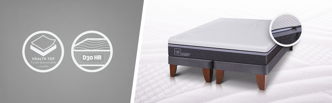 • Health Top: Funda desmontable y lavable lo que permite higienizarla para mantenerla libre de ácaros y suciedad.