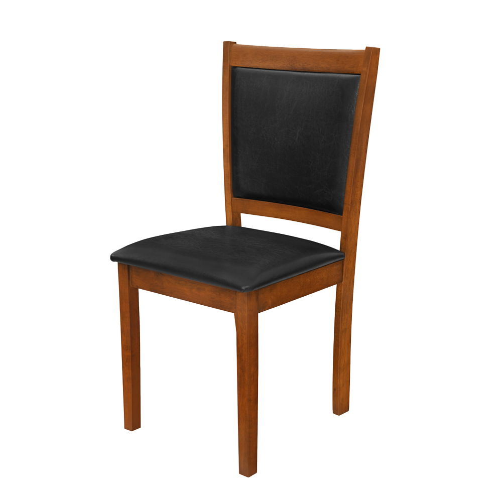 Las sillas cuentan con estructura de madera, entregando estabilidad y durabilidad. Su asiento tapizado en poliéster aporta una sensación cómoda y práctica, adecuada para comidas prolongadas y uso frecuente. El respaldo ofrece un soporte adecuado para la espalda, equilibrando comodidad y firmeza.