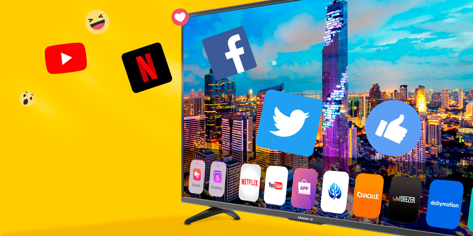 El Led Smart Master-G con norma digital ISDB-T (señal digital) te permite disfrutar de las mejores películas e imágenes con calidad UHD (Ultra alta definición), además de las aplicaciones como YouTube, Netflix, entre muchas otras. La tecnología LED permite brindar la mejor imagen gracias a la composición de pixeles mediante módulos o paneles. Un sofisticado televisor de alta definición con formato Ultra Slim (ultra delgado) ofrece rendimiento y estilo para quienes gozan de ver televisión. También posee un gran sonido que te hará oír en alta fidelidad. Cuenta con entradas HDMI y USB para entregar una conexión total con otros dispositivos, como tu consola de juegos. El control remoto tiene acceso directo a las principales aplicaciones Netflix y YouTube.