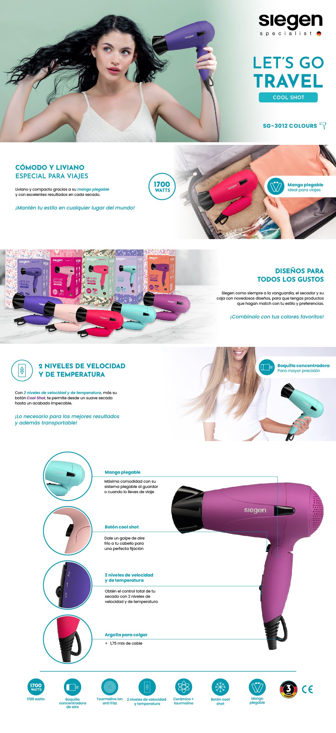 Secador De Pelo Siegen Let's Go Travel SG-3012C58