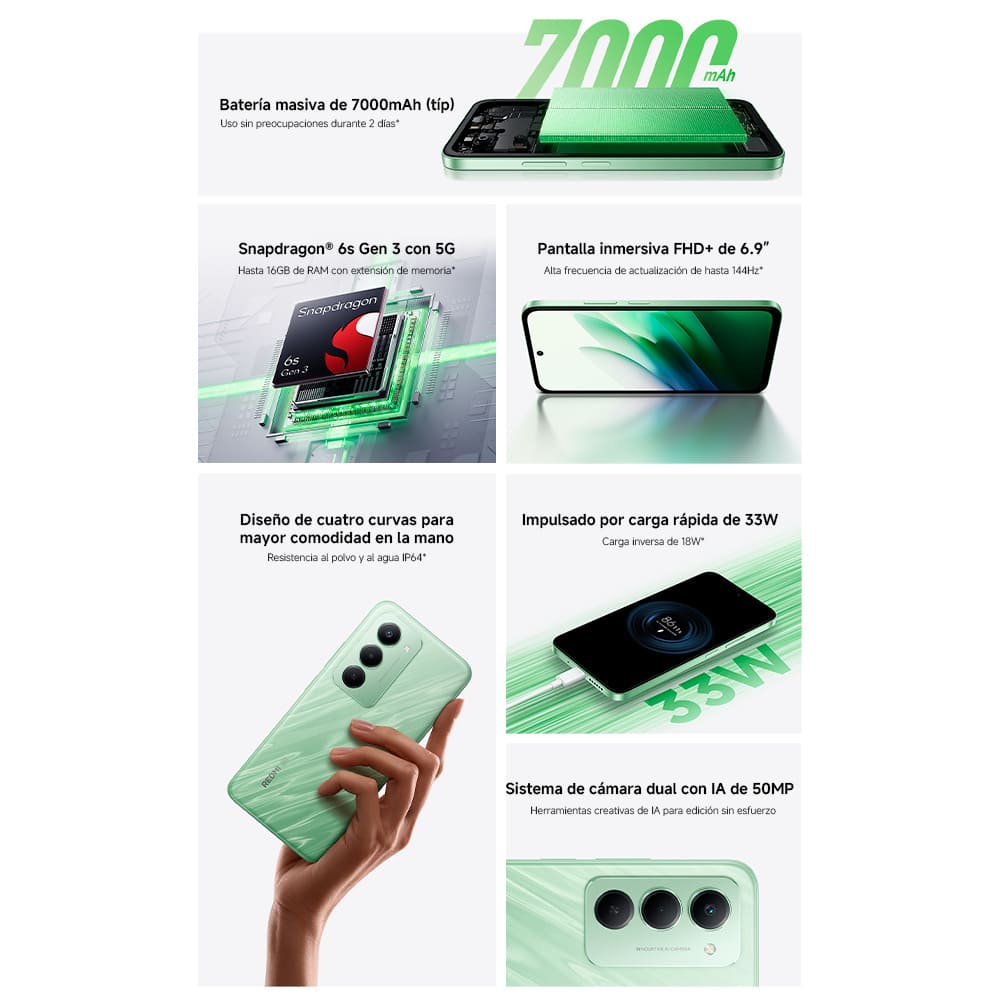 La carga turbo de 33W te mantiene en marcha sin preocupaciones, logrando un equilibrio perfecto entre carga rápida y larga duración de batería.