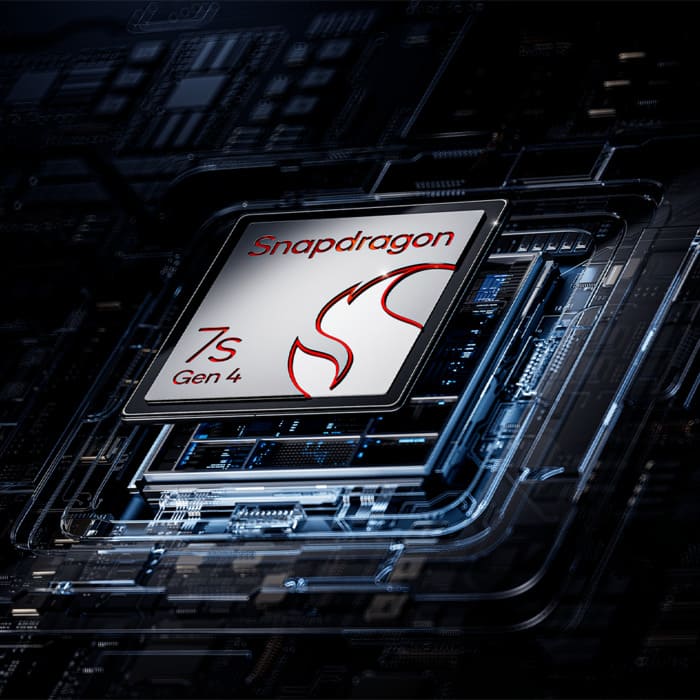 Snapdragon® 7s Gen 4 adopta un proceso de 4nm y una arquitectura de alto rendimiento de ocho núcleos, ofreciendo una mejora general de rendimiento de casi un 10%. Garantiza fluidez en el uso diario y maneja juegos y multimedia sin esfuerzo.